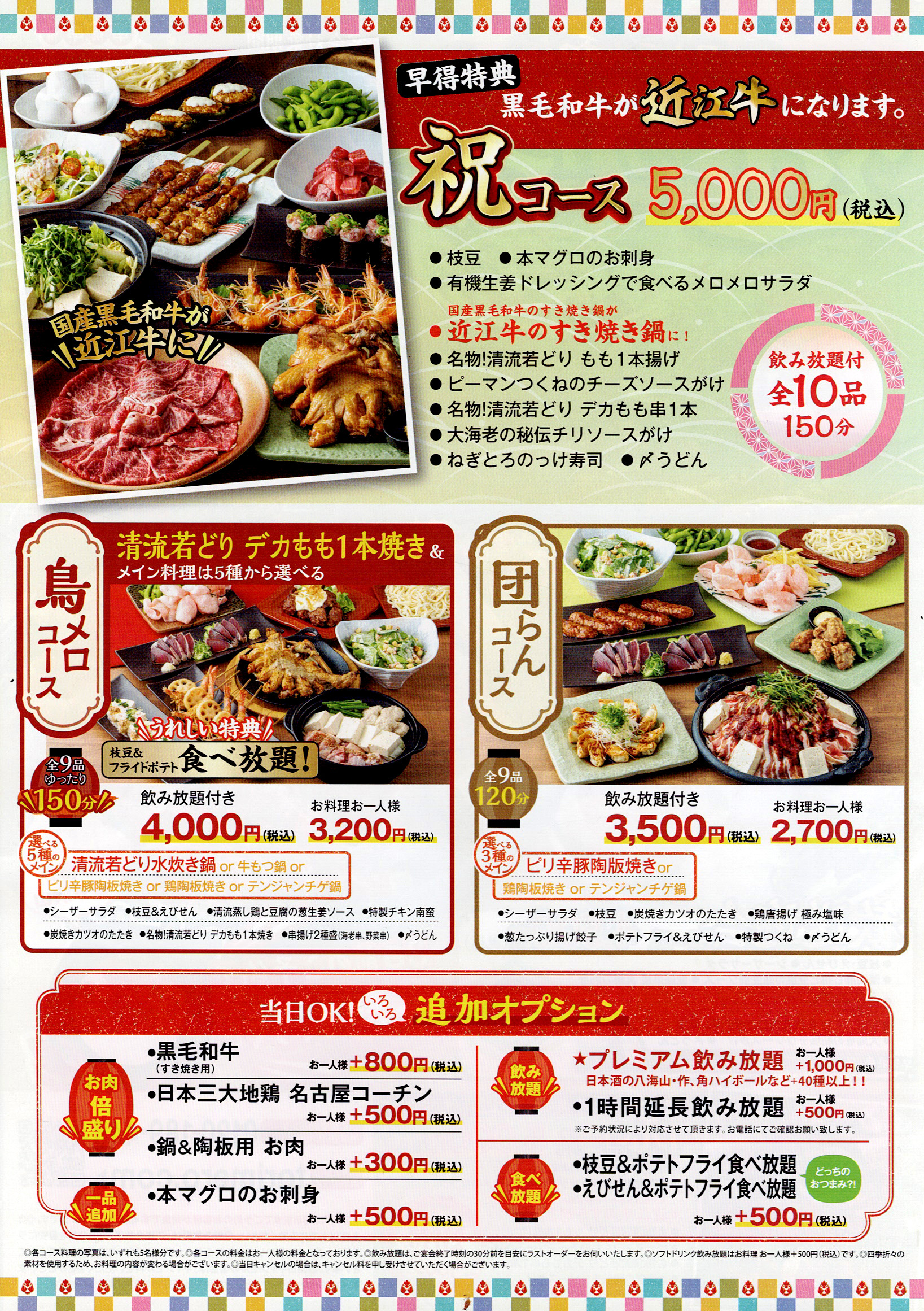 歓送迎会にぴったりの宴会コースをご用意しています。